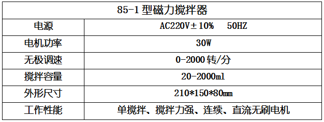 產(chǎn)品介紹85-2C、HJ型系列恒溫磁力攪拌器采用直流穩(wěn)速電機(jī),無噪聲、無振動(dòng)、無極調(diào)速,主要提供強(qiáng)粘度常溶液的攪拌,同時(shí)具有恒溫加熱裝置,是廣泛用于各大院校、環(huán)保、衛(wèi)生、防疫、石油、冶金、化工、自來水、醫(yī)療等單位的實(shí)驗(yàn)工具。